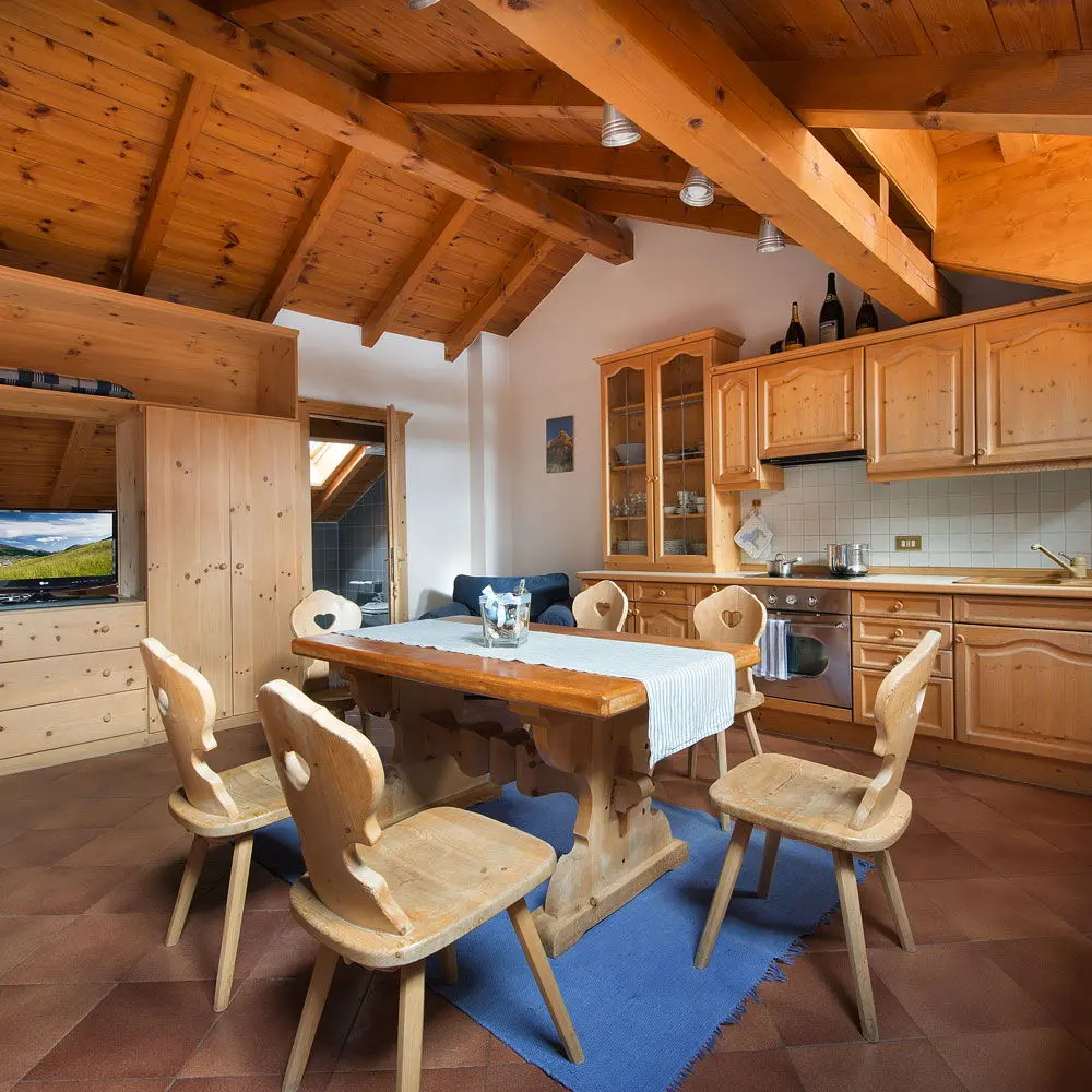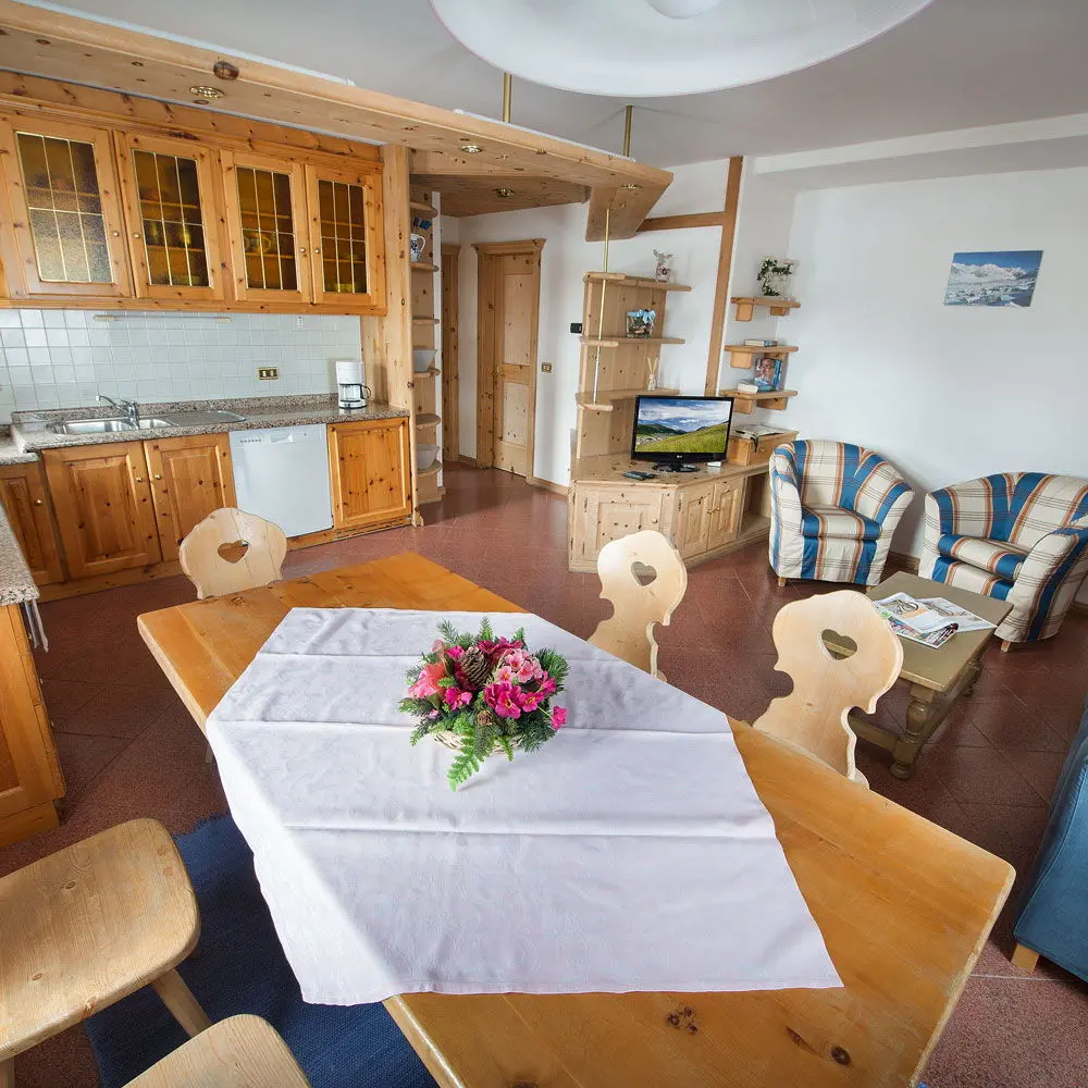 I nostri appartamenti sono perfetti per qualsiasi tipo di vacanza: ognuno è arredato in tipico stile montanaro, con travi di legno a vista e mobili artigianali.